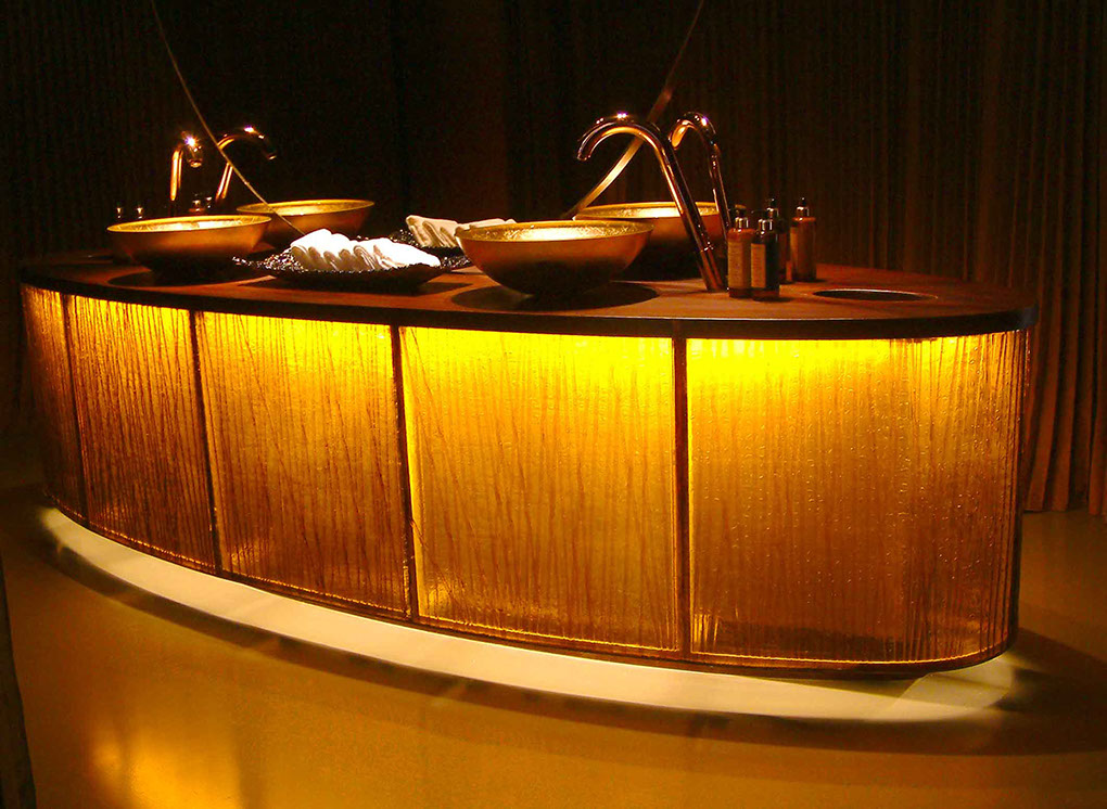 Hotel Teatro, Porto Portugal, fused glass textured counters.