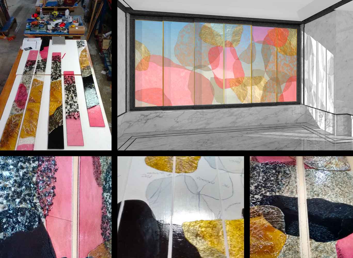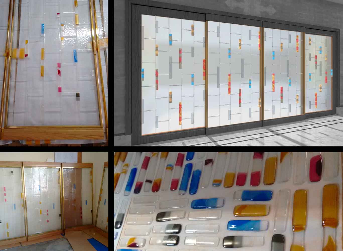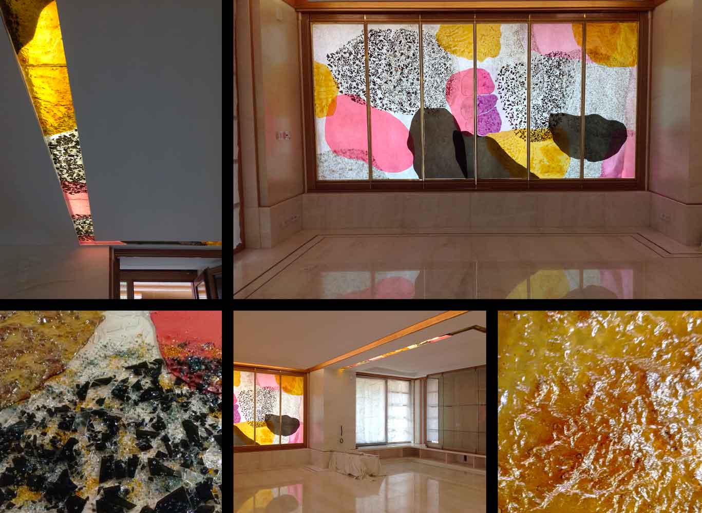 Private Home, Portugal, stained fused glass windows and ceiling light.